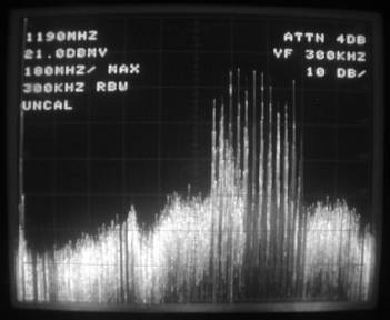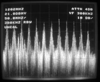 horizontal scan and 10 dB/Division vertical deflection mode. Observe the noise floor (bandwidth) of the