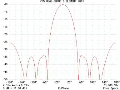 of two, horizontally stacked high-gain Yagis, with a horizontal spacing of H