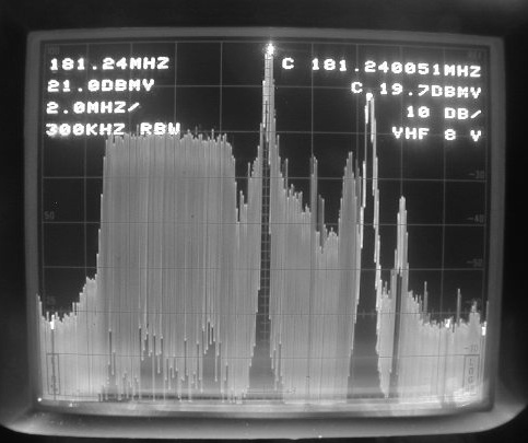 The picture on the right side records another frequently encountered interference problem. This time a grandfathered analog channel suffered from the adjacent Channel 64 power spectrum, resulting in very noisy pictures.