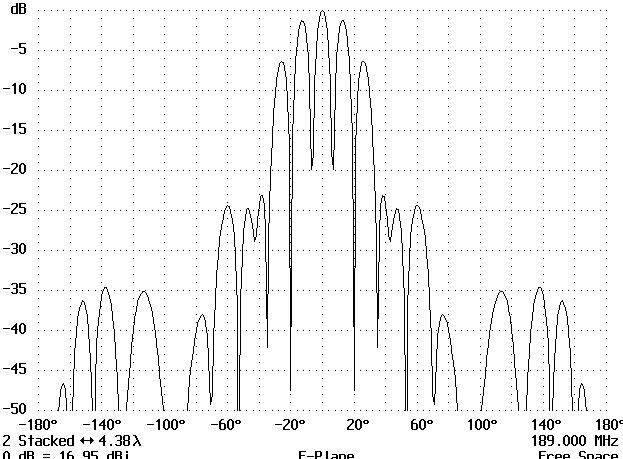 of a phased-array of 12 element Channel 33 Yagis, with a horizontal spacing