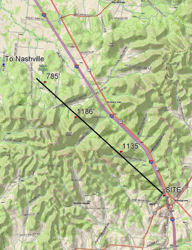 Sea Level, observe the 1135 ft and 1186 ft obstructions into the Nashville direction.
