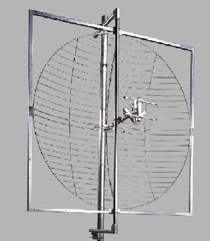 A properly designed 6’ diameter parabolic antenna should have a gain of 15 to 18 dB, depending on the desired channel, while the beam width is in the 20° range. True, the grid reflector construction will reduce its theoretical gain. On the other hand, the reduced wind load is an undisputed advantage of this model.